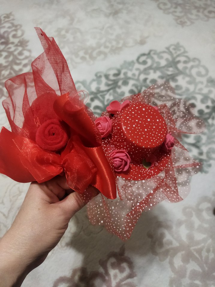 Canlı kırmızı kumaş, fırfır detayları ve süslü güllerle bohem tarzda düğün aksesuarı. Moda ve avangart görünüm için uygun. ikili fiyatı çocuk taç toka