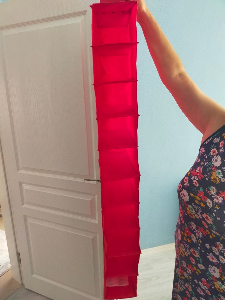 Kırmızı çok bölmeli dolap düzenleyici, askıya takılarak kullanılır ve alan tasarrufu sağlar. Çoklu bölmeleri ile düzen sağlar. İkeadan alındı. cok az kullanıldı. herhangi bir sorunu yok.