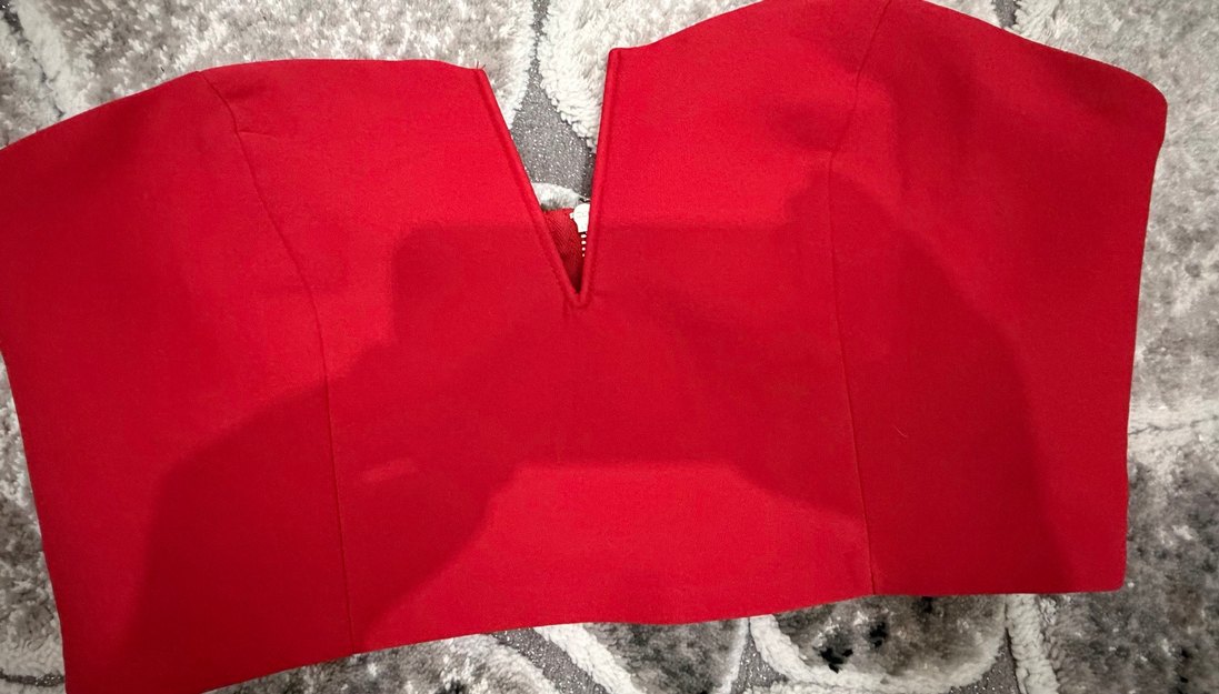 Kırmızı arkası fermuarlı crop hiç kullanılmadı çok ıyı durumda 38 beden