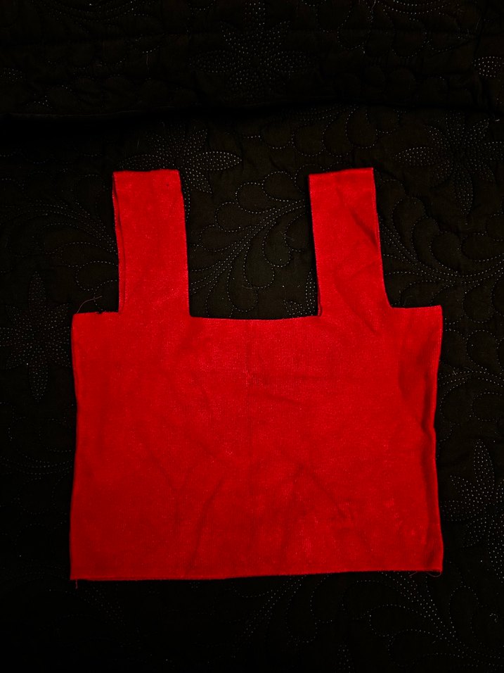 Kırmızı renkli, desensiz ve yumuşak kumaştan yapılmış crop.
