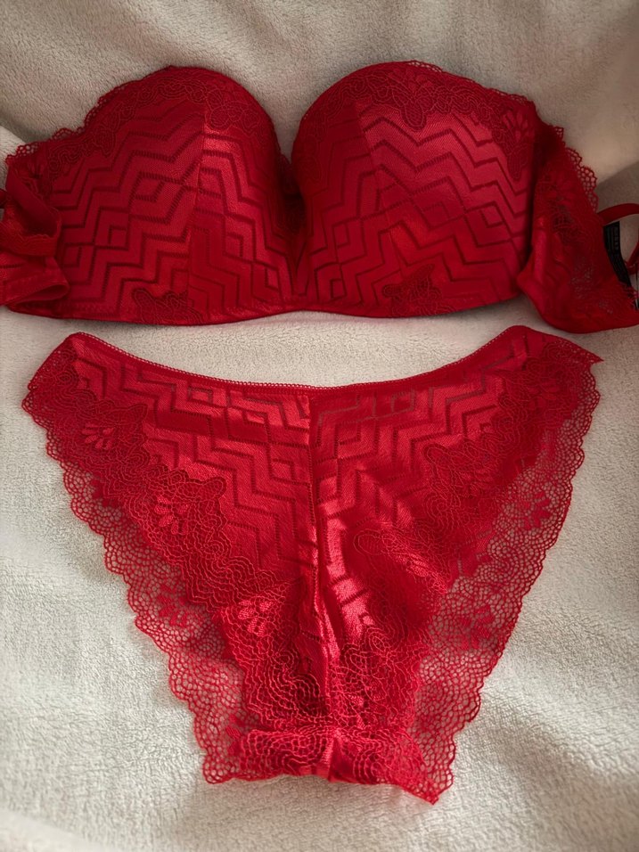 Kırmızı renkte, bohem tarzda sütyen ve külot takımı. Sütyen chevron desenli, külot ise çiçek desenli dantel detaylıdır. Beden ve renk sorunuz ❤️