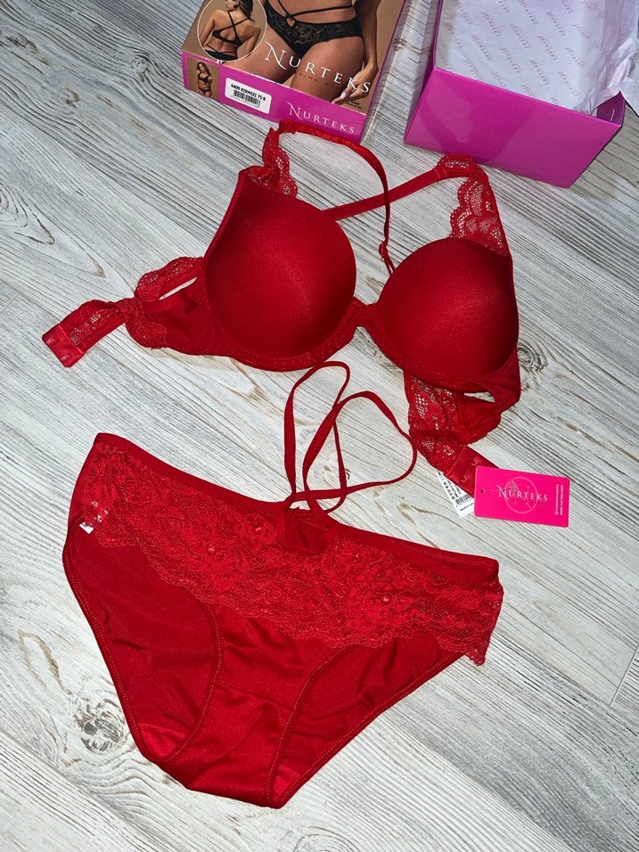 Kırmızı kısa kesim bohem tarzda sütyen takımı, dantel detayları ve ayarlanabilir askılarla şık ve çekici bir görünüm sunar. Kutusuyla beraber gonderilicektir etiketi ustunde bedeni fotoğraflarda vardir