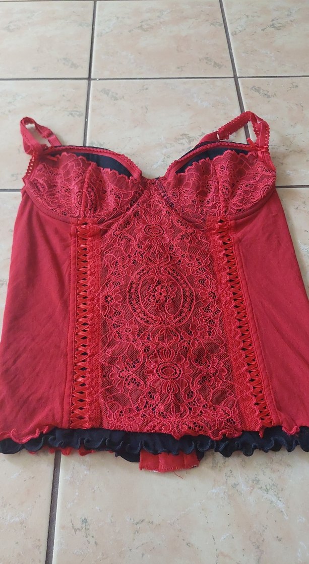 Kırmızı, dantel detaylı, normal uzunlukta ve vücuda oturan hemşire korsesi. Ayarlanabilir askılar ve rahat kullanım sunar. ❤️
