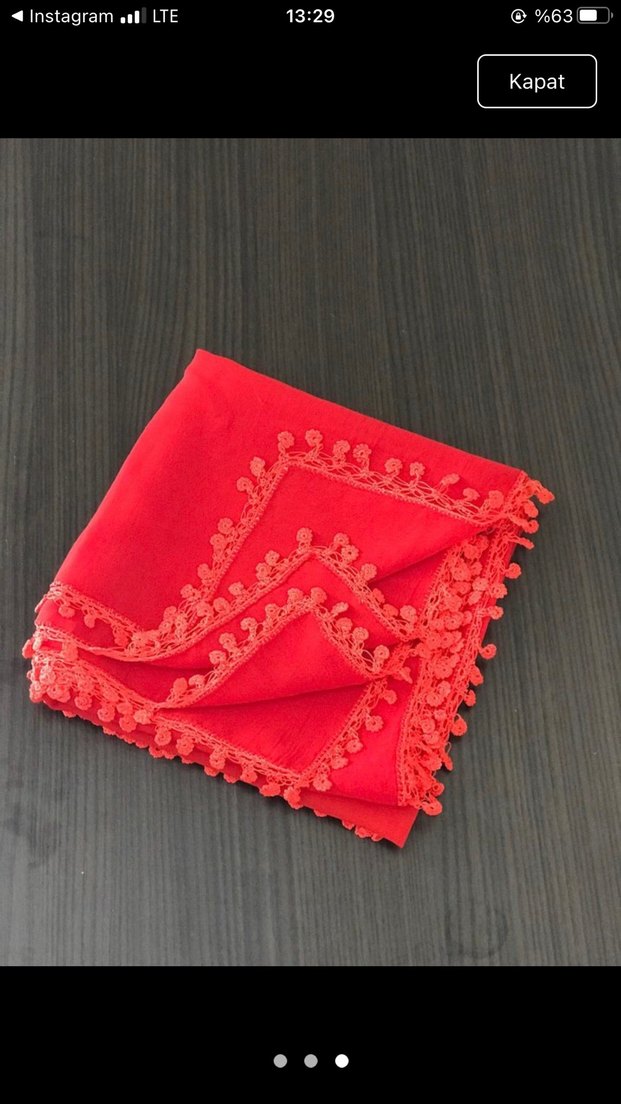 Kırmızı Dantel Detaylı Kadın Eşarp