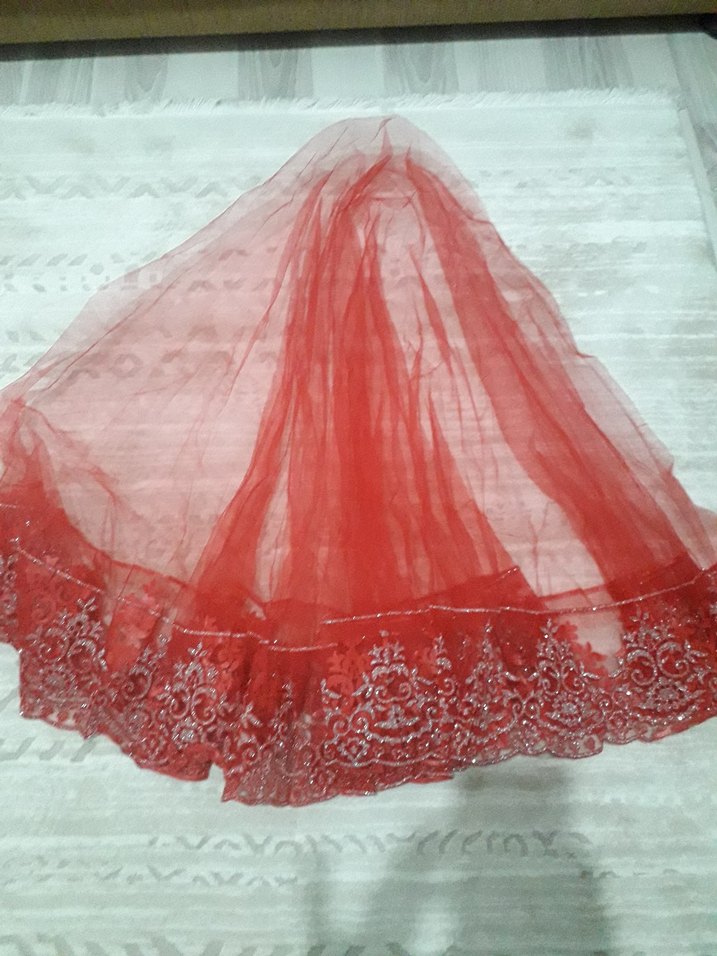 Kadınlar için parlak kırmızı sentetik kumaştan yapılmış, uçları dantel detaylı, geleneksel ve bohem tarzda şal. ✨