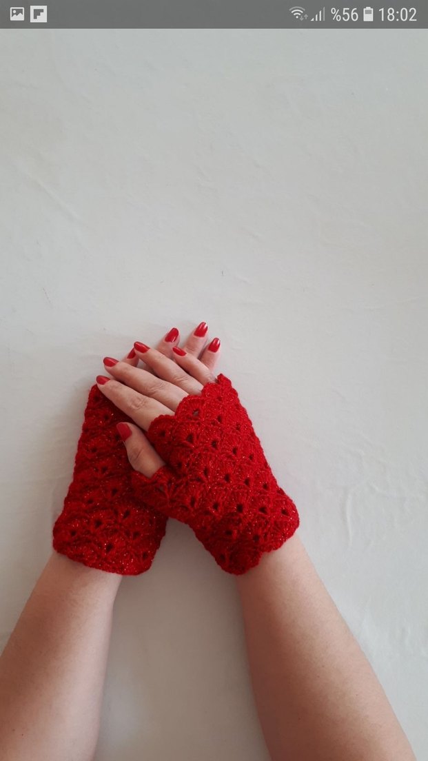 Kırmızı örgü eldivenler, dantel detaylı ve renkli tasarımıyla bohem veya gotik stiller için uygundur. Parmaksız ve yumuşaktır.