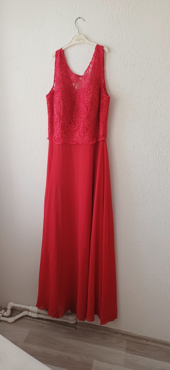 Kırmızı Dantel Detaylı Uzun Abiye Elbise