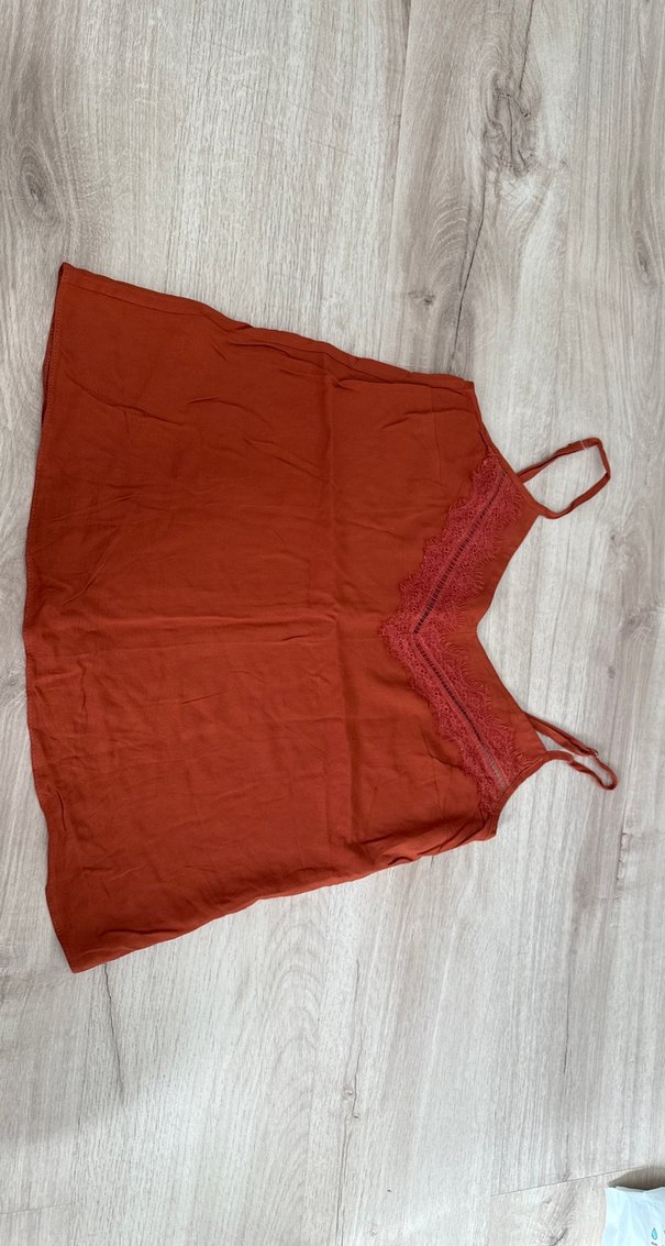Kırmızı, dantelli V yaka, kolsuz kadın atlet. Yumuşacık bir bluz tertemiz hiç kusuru yok