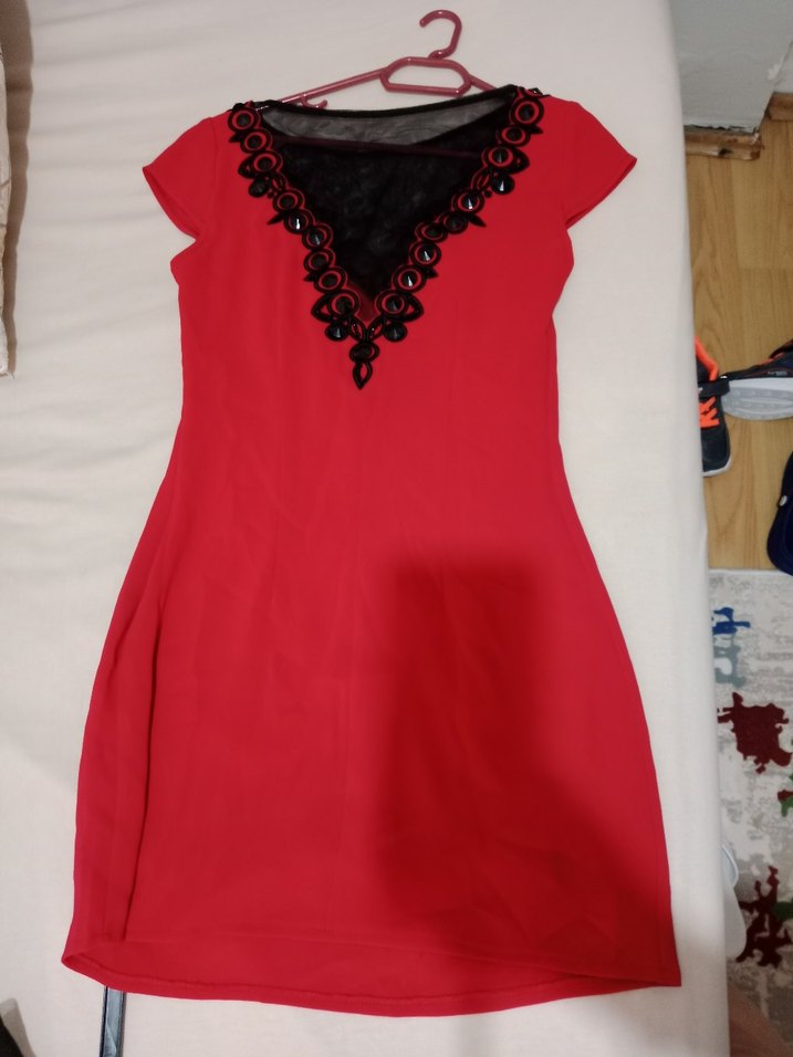 Kırmızı, dantel işlemeli V yaka detaylı, gövdeyi saran midi uzunlukta, kolsuz gotik tarzda cesur bir elbise. Romantik akşamlar için uygundur. ❤️