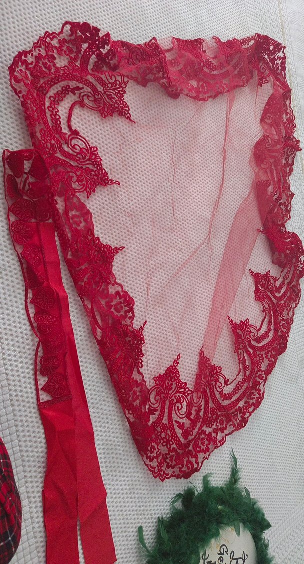 Parlak kırmızı sentetik kumaştan, ince dantel detaylı kadın şalı, vintage bohem tarzı için uygun. iki tane kına sepeti 2 tane duvak 2 tane tef kullandığım için yıpranma vesaire gibi durumu yok