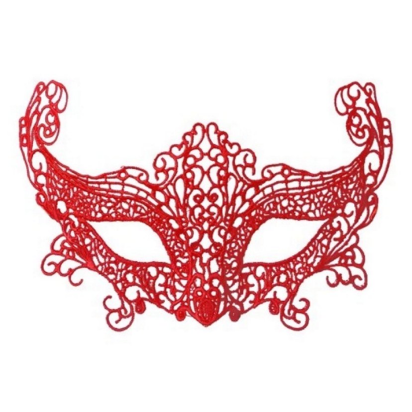 Kırmızı dantel detaylı maske, maskeli balo veya kostüm partileri için uygundur .