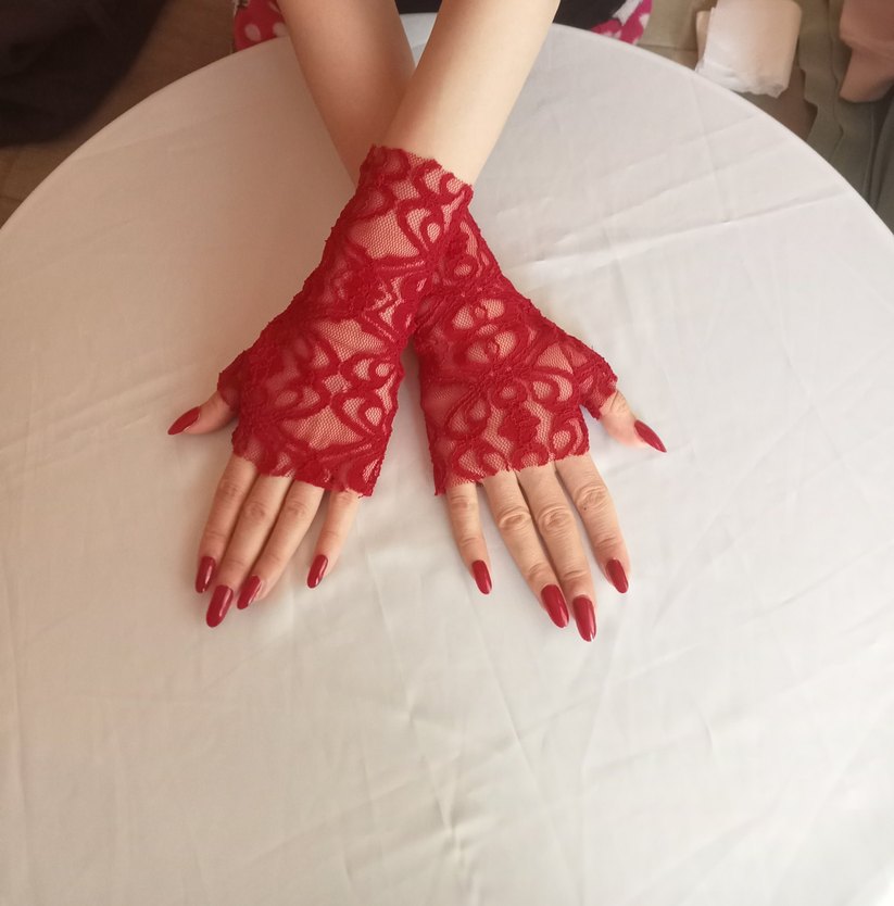 Kırmızı Dantel Yarım Parmak Goth Eldiven
