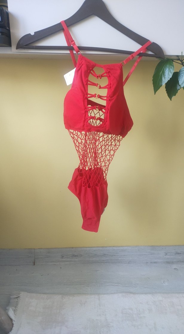 İnce askılı, dantelli ve nakışlı kırmızı gecelik bohem ve avangart tarzı bir araya getirerek cesur bir parti görünümü sunar.