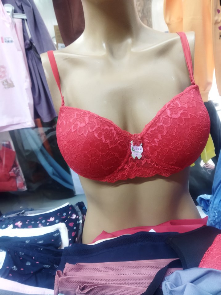 Kırmızı renkte, kısa boylu ve dantelli detaylara sahip sütyen. İnce askılı ve desen içermeyen, renkli ve göz alıcı sokak tarzında.85 beden destekli