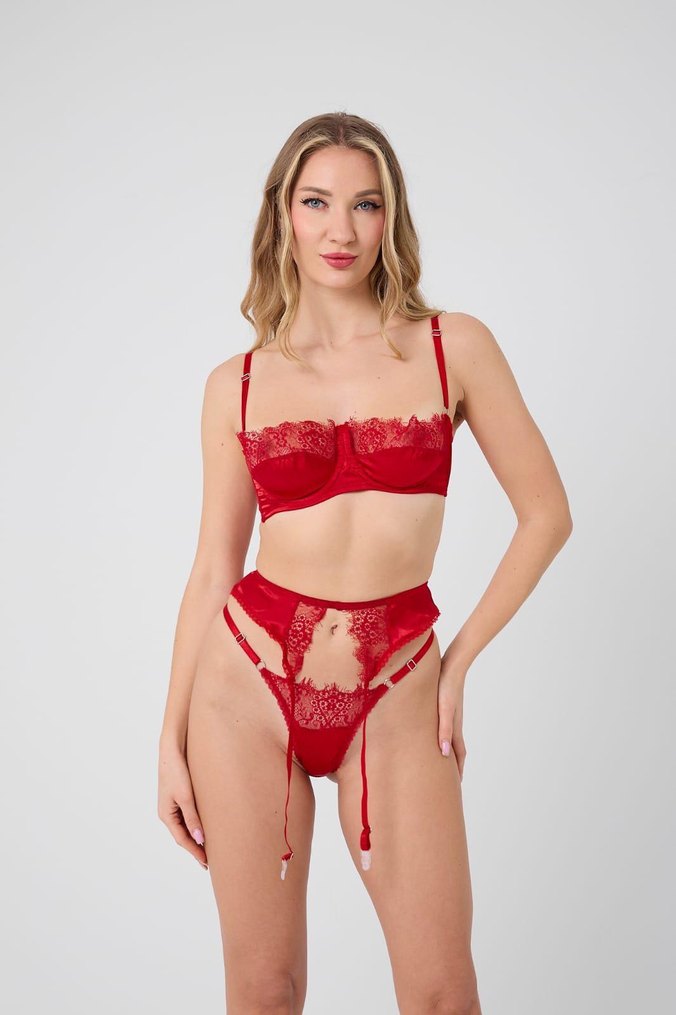 Kırmızı, straplez ve dantelli bu sütyen, ince nakışlı ve ipeksi kumaştan yapılmıştır. Modern klasik tarzda, romantik geceler için uygundur. Victoria secret muadili S/M/L/XL bedenleri bulunur