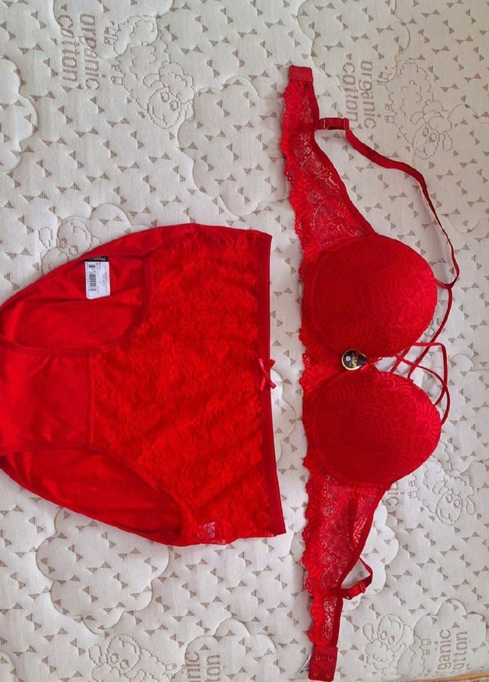 Kırmızı renkte, yumuşak dantelli kumaştan bohem tarzında sütyen ve normal boy külot takımıdır. Ayarlanabilir askıları vardır. ❤️