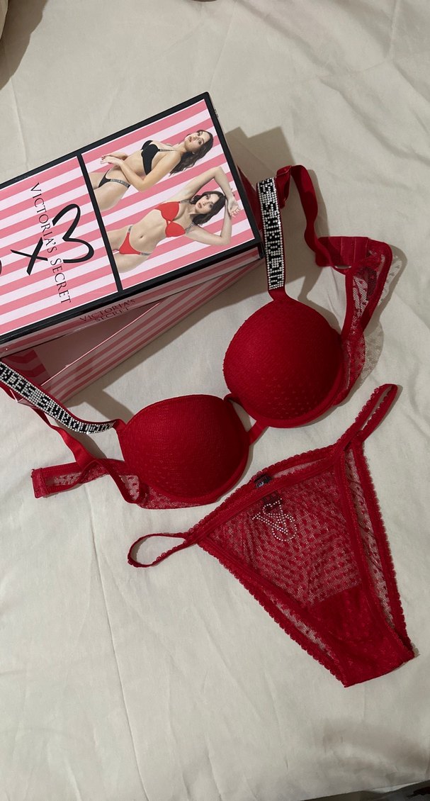 Kırmızı Dantelli ve Taşlı Victoria Secret Kilot Sütyen Takım.