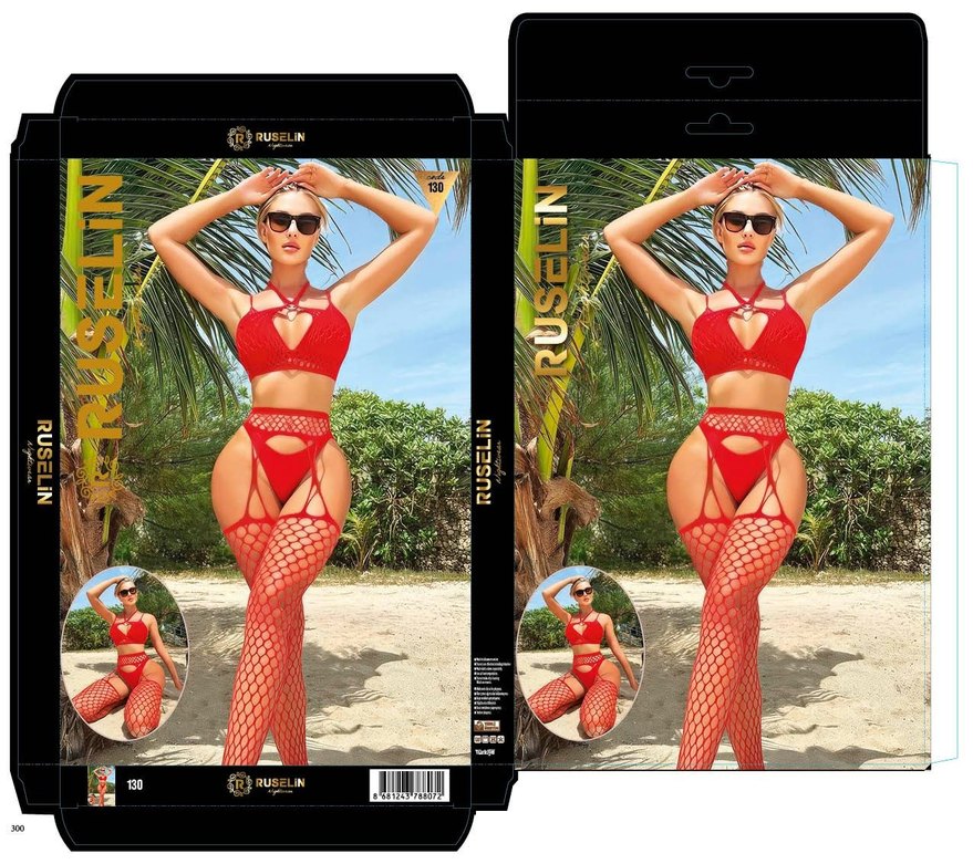 Kırmızı Dantelli vücut çorapları