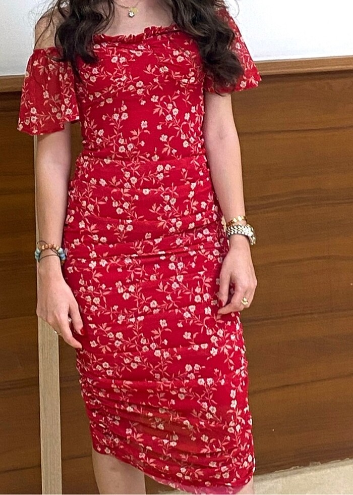 Kırmızı dar kesim elbise midi boy elbise S beden