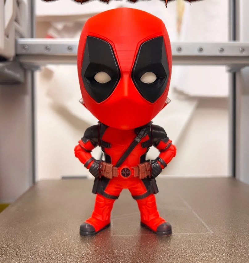 Canlı kırmızı renkte Deadpool aksiyon figürü, detaylı kostüm ve duruşuyla karakteri yansıtıyor. ♂️