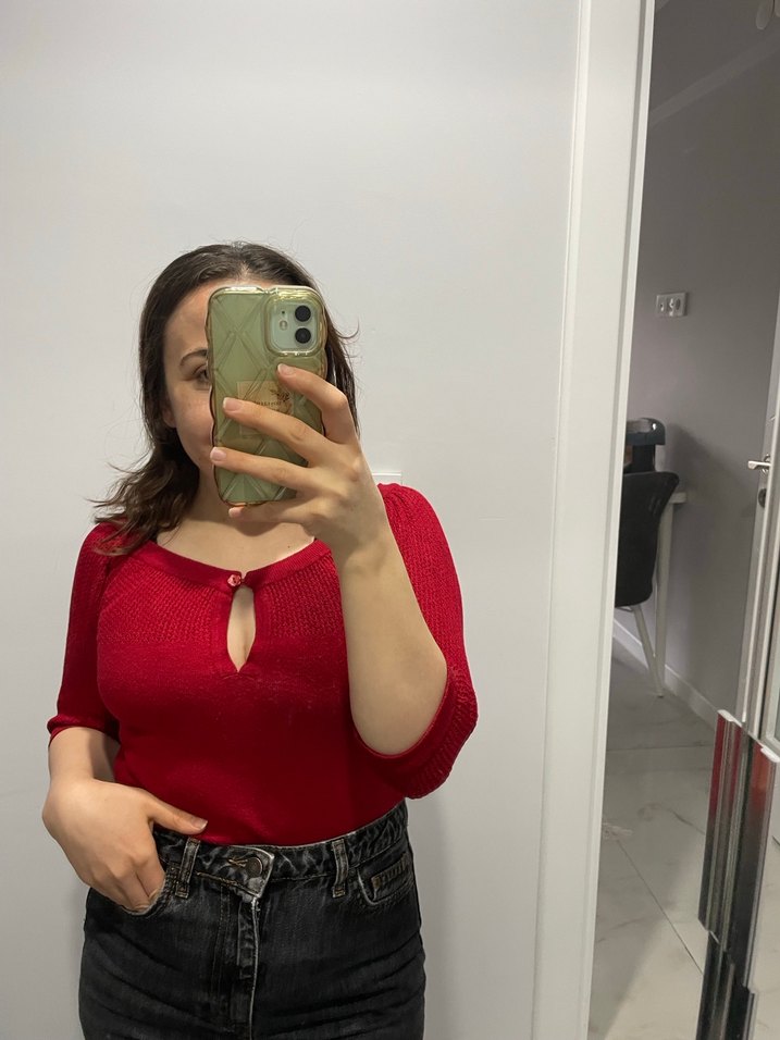 Kırmızı dekoltelı bluz