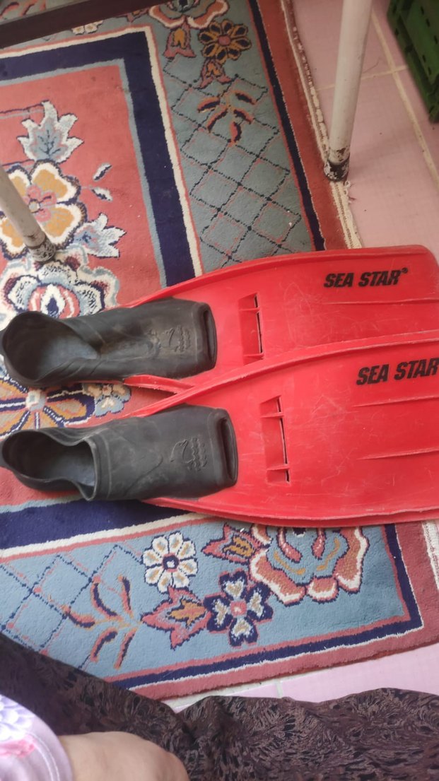 Kırmızı renkte kauçuk malzemeden yapılmış yüzme paleti. Üzerinde 'SEA STAR' baskısı bulunur, plaj için uygundur. 38-39 numara. indirim yapılır