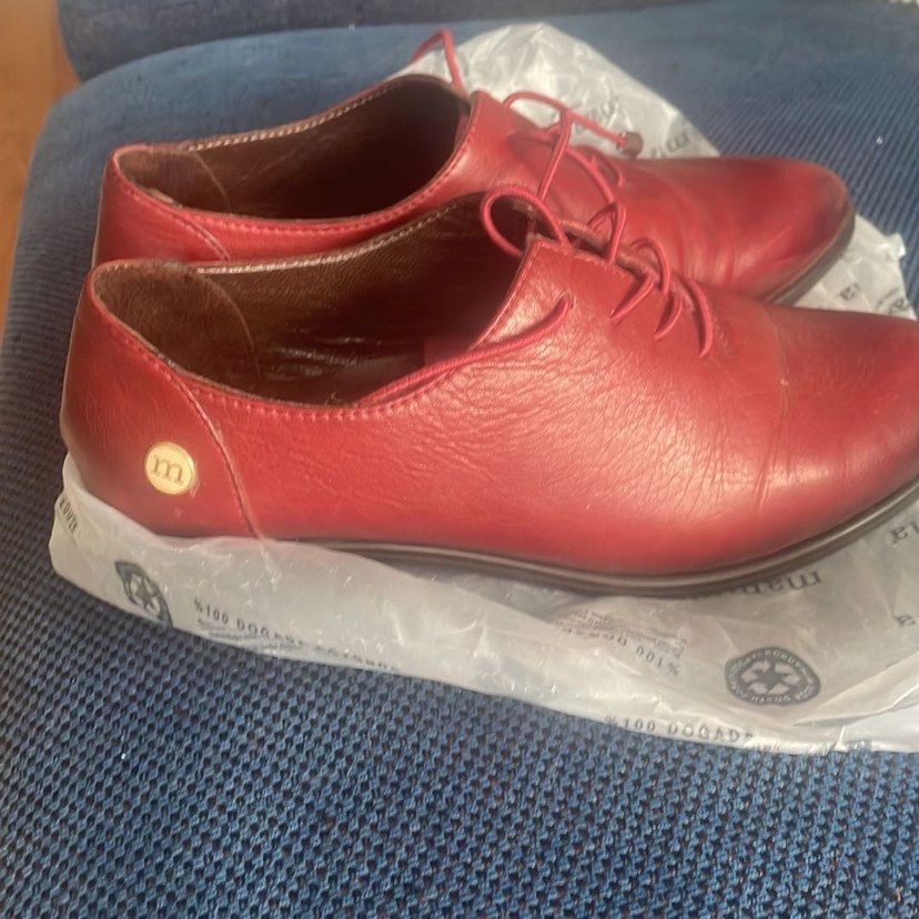Kırmızı Deri Bağcıklı hakiki derş Kadın Ayakkabı