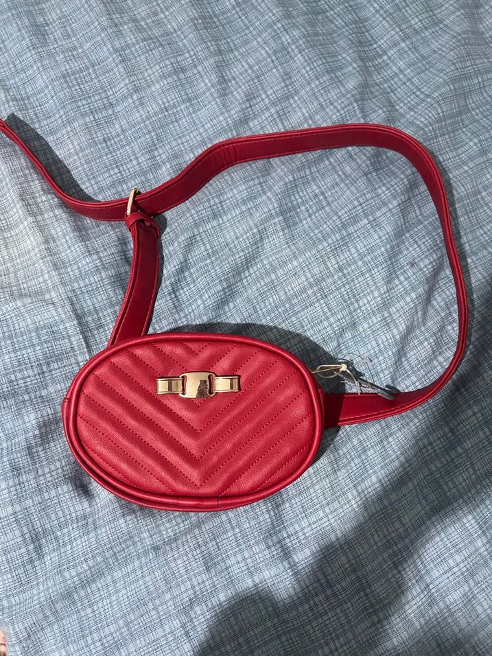 Kırmızı deri, bel detaylı çapraz çanta, yılan derisi desenli, trend sokak stili için uygun.