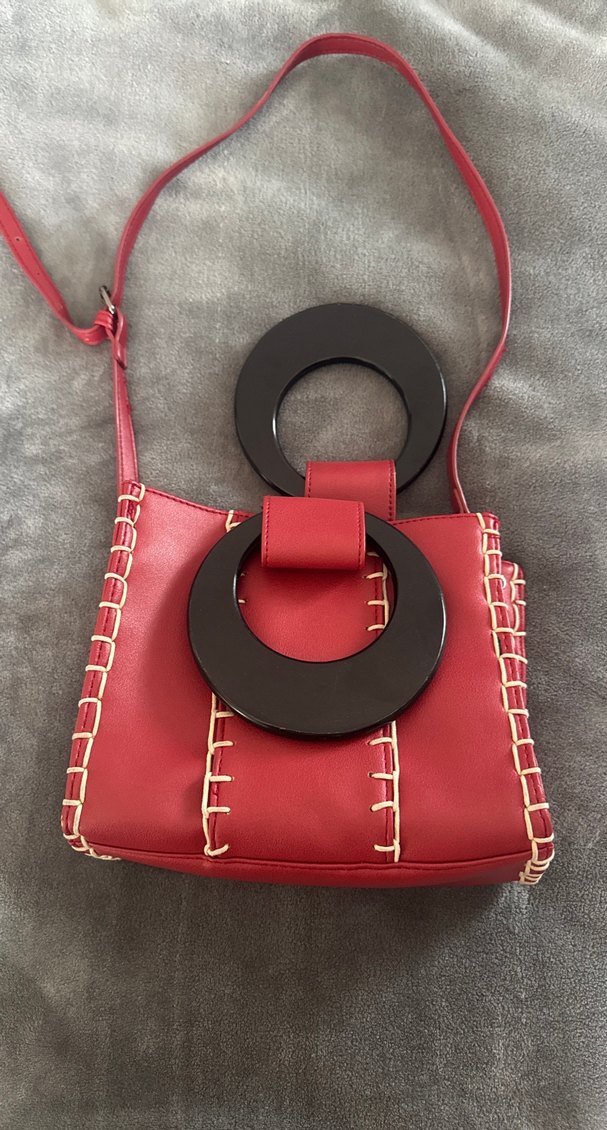 Kırmızı deri, nakışlı detaylı ve tokalı, bohem-retro tarzda Paris esintili kadın çantası. Günlük kullanıma uygun.