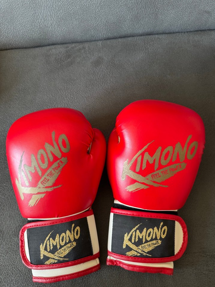 Kırmızı deri erkek boks eldivenleri, renkli baskılı pop kültür tarzında, Velcro bantlıdır. 'KIMONO' markası eldivenlerde yer alır. 1 defa kullanmak nasip oldu yanında 3 adet el bandajı verilecek.(boks eldiveni 10 oz dur)