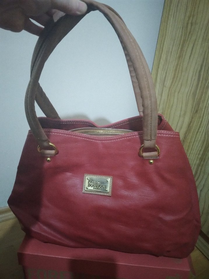 Parlak kırmızı deri kadın çanta, fermuarlı ve baskılı bohem tarzıyla gündelik kullanıma uygundur.