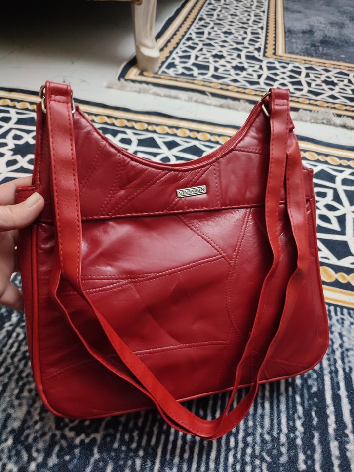Kırmızı Deri Fermuarlı Kadın Çanta