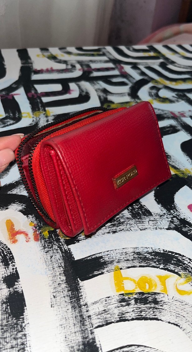 canlı kırmızı deri fermuarlı kadın cüzdan. Baskılı deseni ile cesur, Paris sokak modasına uygun günlük kullanım için ideal.