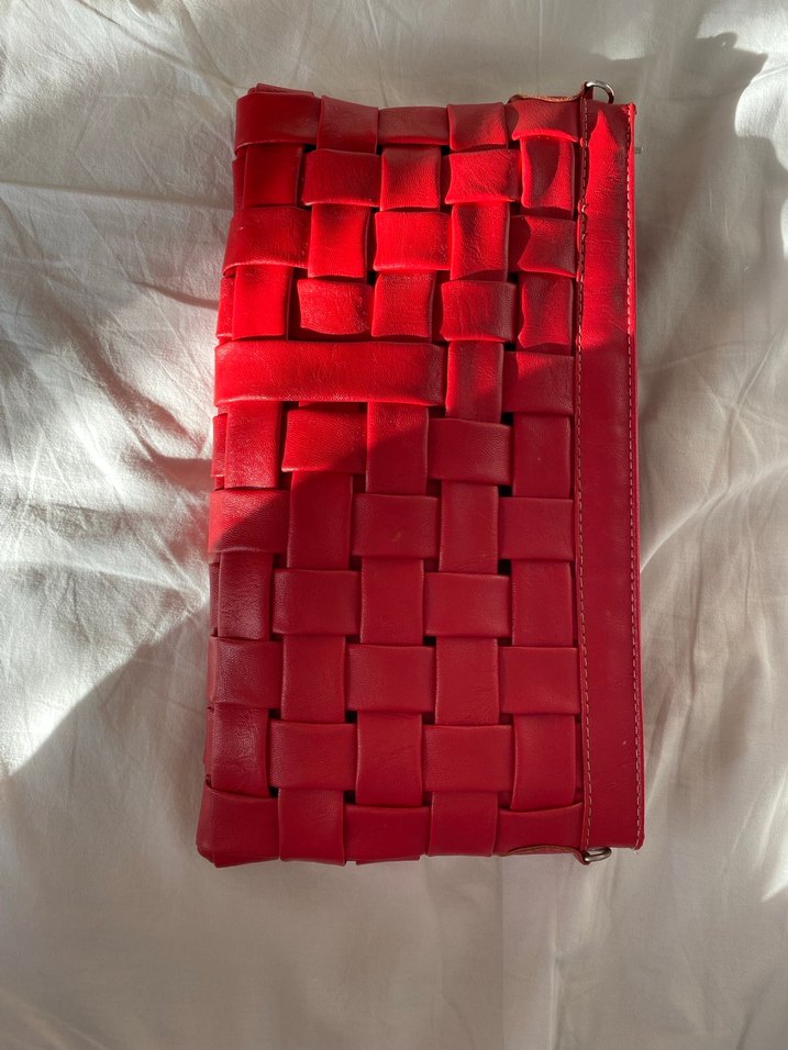 Kırmızı Deri Fermuarlı Kadın Portföy Çanta