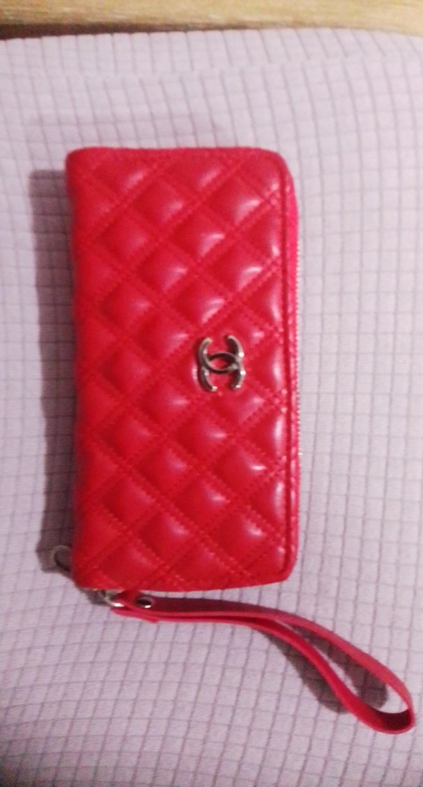 Kırmızı deri, fermuarlı kadın portföy cüzdan, bilek askısıyla kolay taşınır.