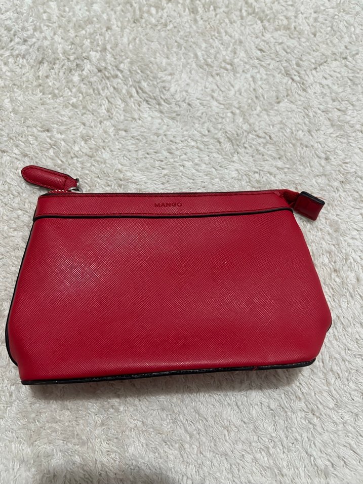 Kırmızı deri kadın çanta, fermuarlı ve desensiz tasarıma sahiptir. Minimalist, sade stiliyle günlük kullanıma uygundur.