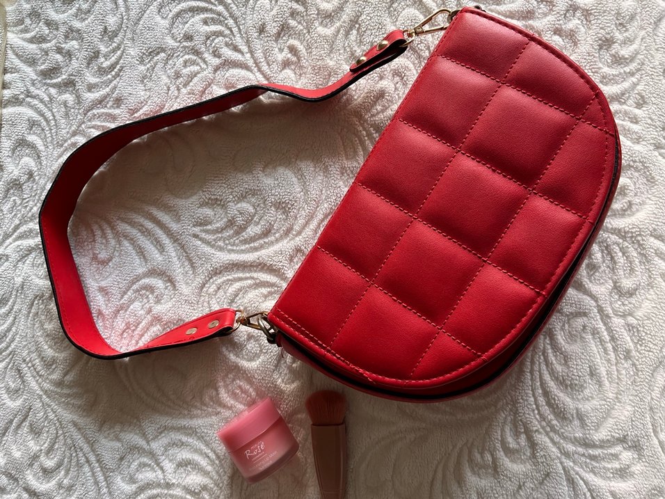 Kırmızı deri kadın çanta, fermuarlı kapanış ve baklava desenine sahiptir. Klasik zarafet ve sokak stilini birleştirir. Günlük kullanım için uygundur.