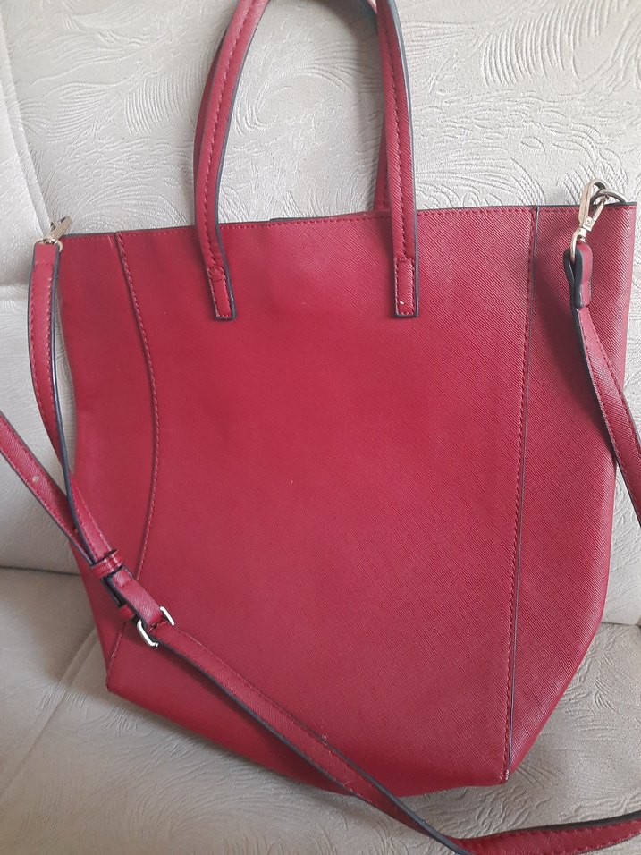 Kırmızı deri kadın çanta, tasarıma sahiptir. Günlük kullanıma uygun, çağdaş tarzda, saplı ve ayarlanabilir askılıdır.