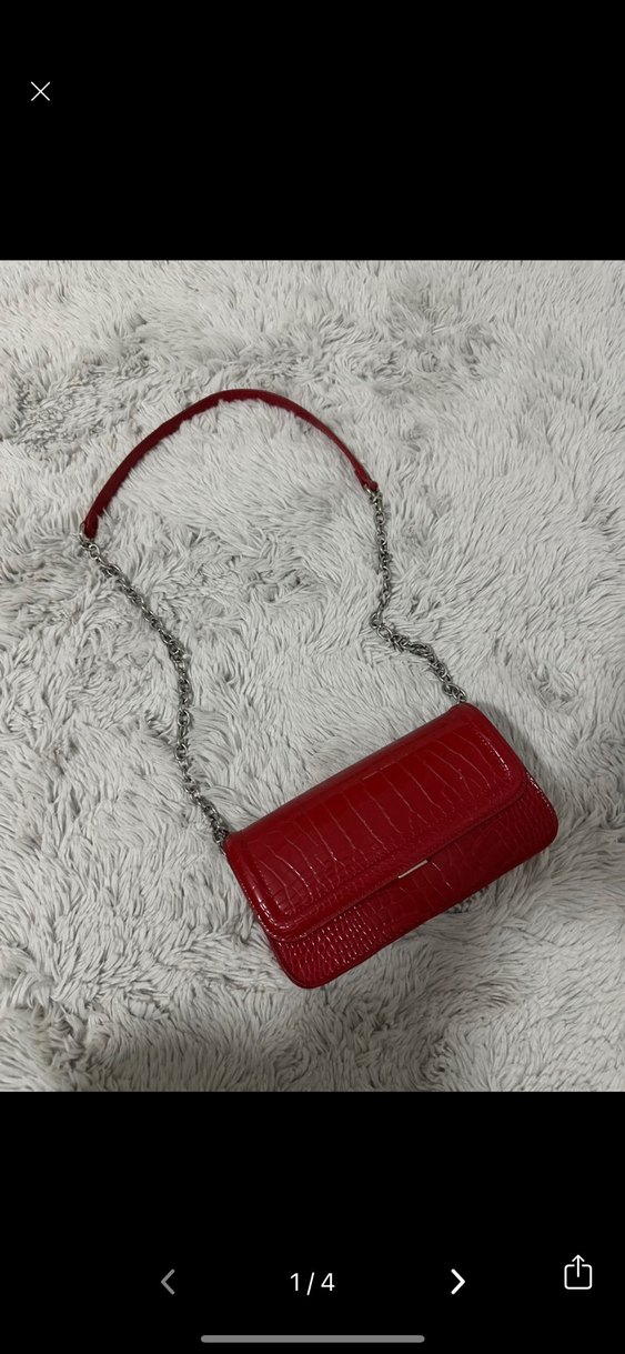 Kırmızı Deri Kadın Çanta Yılan Desenli