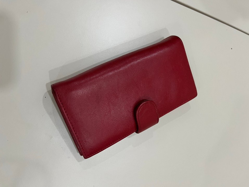 Koyu kırmızı renkte, tokalı, modern klasik tarzda deri kadın cüzdanı. Düz yüzeyli ve günlük kullanıma uygun.