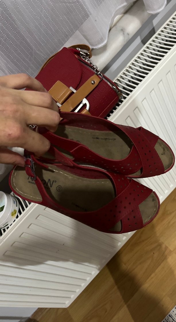 Kırmızı Deri Kadın Dolgu Topuklu Sandalet