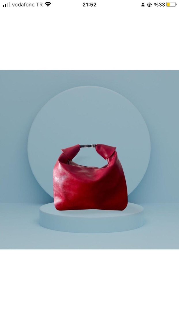 Kırmızı deri kadın çantası, tokalı detaylı, minimalist ve çağdaş tarzda, günlük kullanıma uygun.