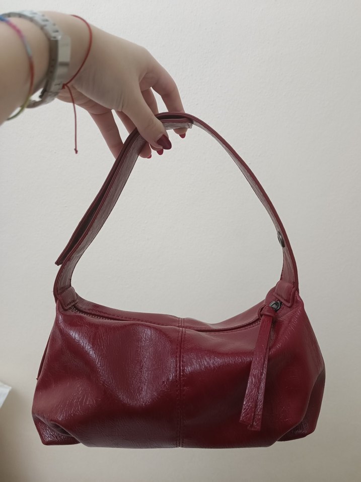 Kırmızı Deri Kadın Omuz Çantası