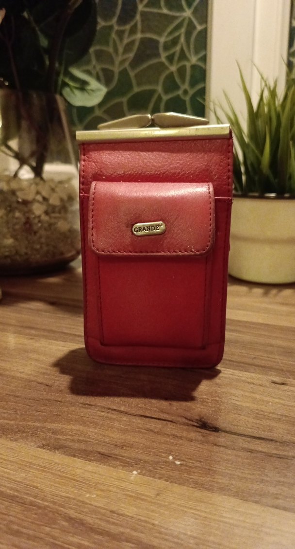 Kırmızı Deri Kadın sigaralık ve çakmak Cüzdanı