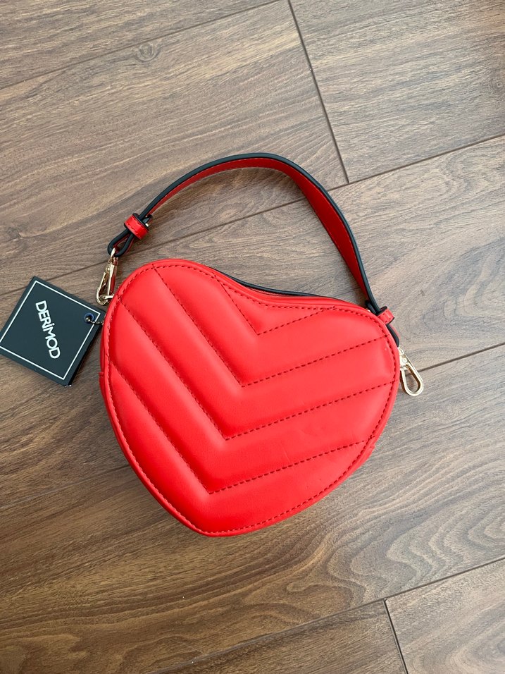 Kırmızı deri, kalp şeklinde bel detaylı kadın çanta, cesur ve Parisli biker tarzını yansıtan romantik gece çantasıdır. ❤️