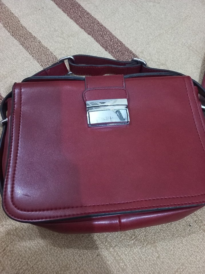 Kırmızı deri, parlak yüzeyli kadın çanta, tokalı kapama ve modern klasik tarzıyla günlük kullanıma uygun, desensiz minimal tasarım. az kullanılmış. Sağlam kaliteli marka çanta. askı bölümü biraz soyulmuş. fotoğrafta gösterdim kullanıma engel değil.içi dışı yepyenidir.