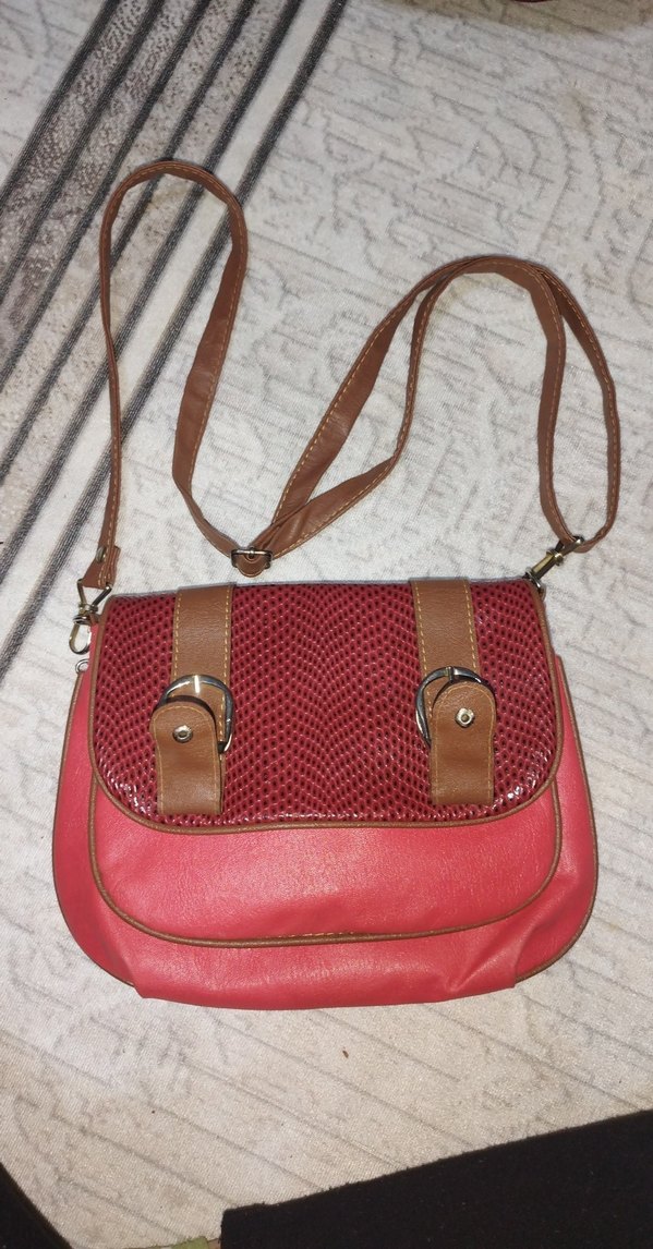 Kırmızı deri gövde, yılan desenli kapak ve tokalı askıları olan bohem tarzda kadın çantası, günlük kullanım için uygundur.