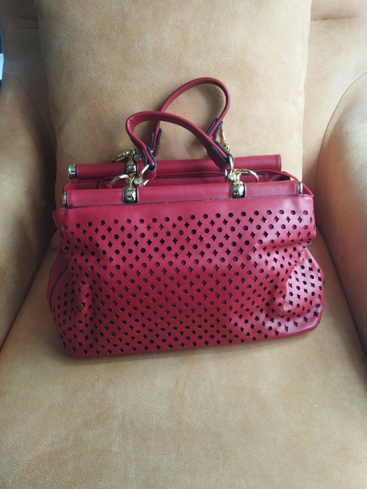 Kırmızı deri tokalı kol çantası, vintage esintili klasik tarzda, renkli ve iddialı detaylarla tasarlanmıştır.
