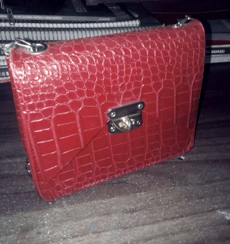 Kırmızı Deri Yılan Desenli Kadın Çanta