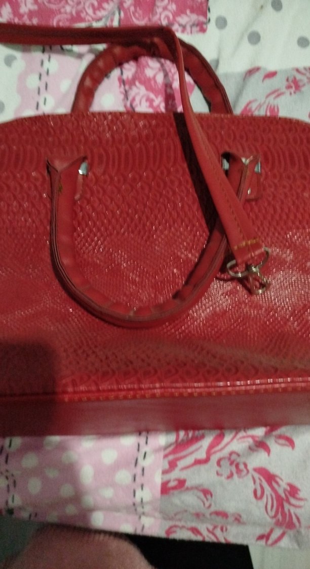 Kırmızı Deri Yılan Desenli Kadın Çanta